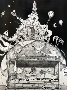 He is best known for his award winning series called (boxboy Jr. Cardboard Box Adventures). “I used to love collecting the leftover cardboard boxes from packages as a kid. These boxes would become my next adventure. My imagination turned these cardboard structures into castles, spaceship command centers, flying trains and whatever else I thought of. This was the start of me wanting to travel and see the world. I was inspired by my son to illustrate this important phase of my childhood. I wanted him to see a character that looked like him traveling the world and using his imagination as the starting point. So I created this character called (boxboy Jr.). He’s a Cuban and African American mixed boy who uses a cardboard box as a vehicle to journey through his imagination. This is the little boy character in all of his pieces. This art series has allowed Alex to make a living traveling the world with his family while winning multiple awards and spreading the importance of imagination.