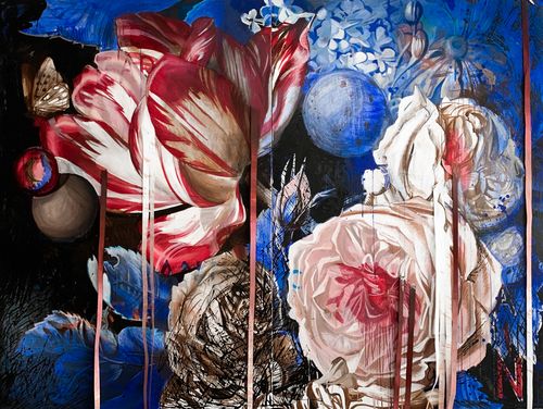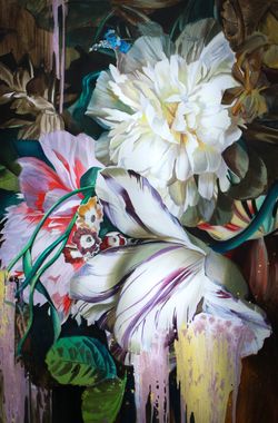 Aleksandra Suvorova uses the artistic pseudonym Baroque Anarchist to emphasize her connection to art-historical references within her practice. She is a London-based visual artist inspired by the Baroque epoch and its dialogue with the contemporary world. Born during the Chernobyl disaster, she explores the quest for immortality through science and art, as well as the fragility and resilience of nature. She uses the garden as a metaphor for the human body, family, career, and anything we nurture and grow. Her background in Baroque painting and theatre design shapes her practice, enabling her to create bold works that address current issues.
